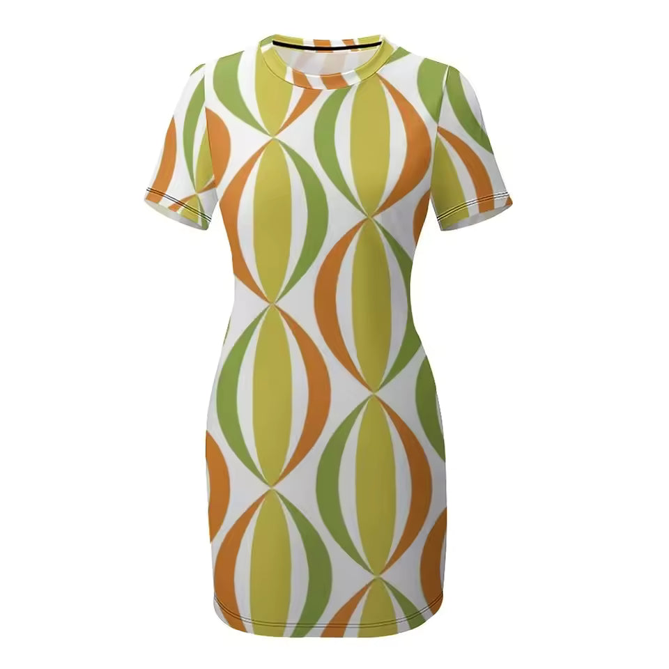 Dieses kurzärmelige Damenkleid besticht durch sein charakteristisches 60er-Jahre-Muster, das einen nostalgischen Charme mit moderner Leichtigkeit verbindet. Der feminine Schnitt sorgt für eine schmeichelhafte Silhouette und angenehmen Tragekomfort an warmen Sommertagen.