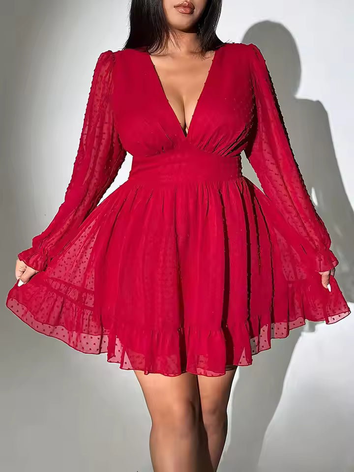 Ob Party, Abendessen oder Event – dieses kurz geschnittene Kleid mit langen Ärmeln kombiniert Komfort mit Eleganz und sorgt für einen stilvollen Auftritt.